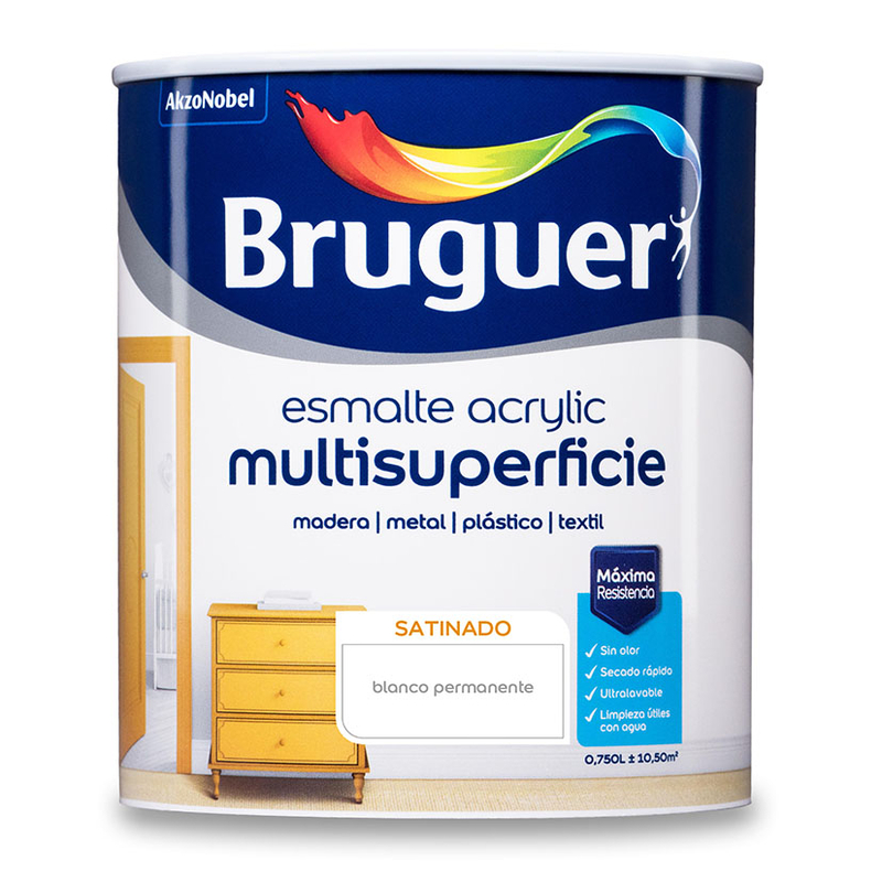 Además, gracias a su gran adherencia podrás pintar materiales como melanina, poliéster, fórmica…Gracias a su exclusiva formula, no sólo tendrás un acabado satinado de alta calidad, sino un acabado resistente y duradero. Además, gracias a sus propiedades podrás disfrutar de las ventajas de un esmalte satinado de alta calidad tanto en interiores como exteriores. Base agua, sin olor. secado rápido y lavable.