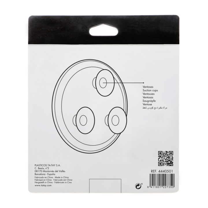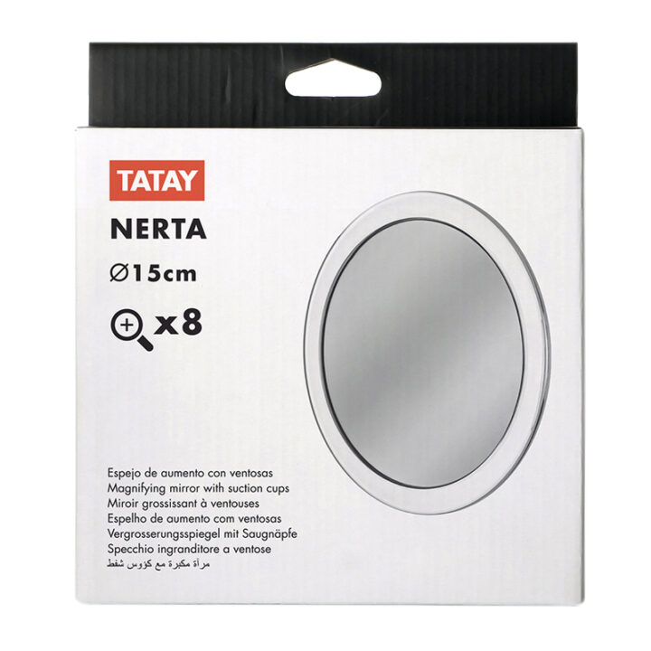 Este espejo esta diseñado para que lo instales en la pared mediante unas ventosas de esta manera no tienes que realizar agujeros extras. Fabricado en polímeros plásticos y vídrio, tiene un diámetro de 15 cm y un aumento X8. Viene presentado en caja.