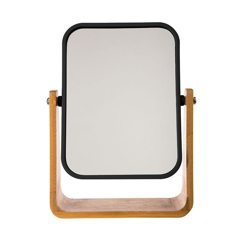 El espejo de sobremesa de la serie Nature está fabricado en poliestireno, bambú y cristal. El espejo tiene el marco en color negro y está sobre una base en bambú. Es basculante para poderlo utilizar cómodamente en la posición deseada. Podrás combinarlo con el resto de accesorios de la serie Nature que tenemos en nuestra web. De está manera darás un aspecto rústico y colonial a tu baño. Se presenta en una caja.