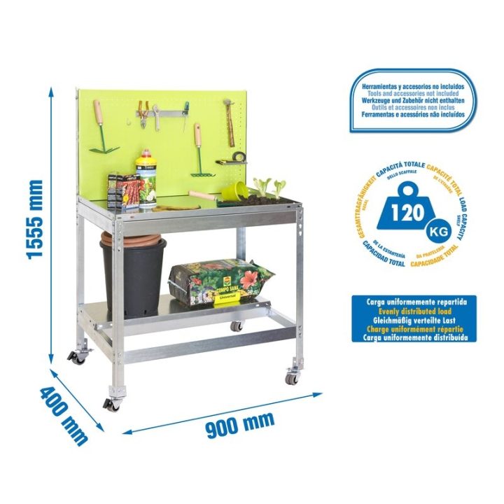 Banco De Trabajo Simongarden Bt2 Con Ruedas 900X400 Verde/Galva