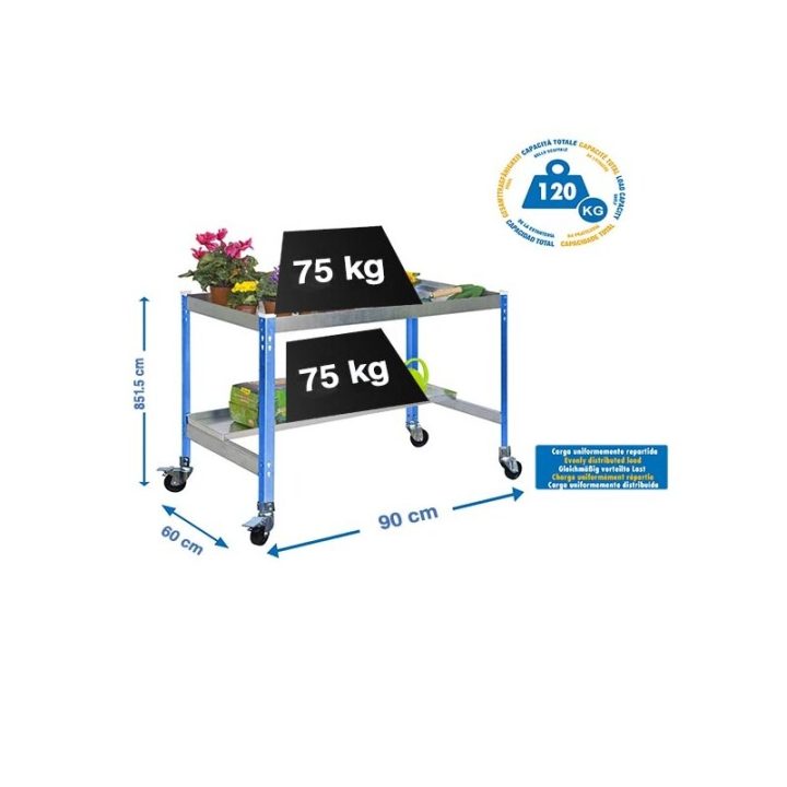 Mesa De Cultivo Con Ruedas 900X600 Azul/Galva