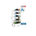 Montaje sin tornillos. 300 Kg por bandeja con carga uniformemente repartida. 661 Lb por bandeja con carga uniformemente repartida. Incluye bandejas metalicas -Tiempo estimado de montaje 9 minutos. No se tambalea. Es rigida. No necesita anclaje a la pared. Incluye ruedas . Ideal para el jardin por poder aguantar grandes pesos de almacenaje a bajo precio.Color del producto VERDE/GALVANIZADO. Dimensiones 2000x1000x400. Nº estantes 5