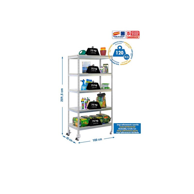Estantería Media Carga Simongarden Bricoforte Con Ruedas 1004-5 Galva/Galva