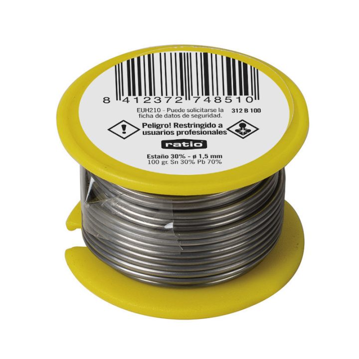 Hilo de estaño de 1,50 mm de diámetro en bobina de 100 gramos.