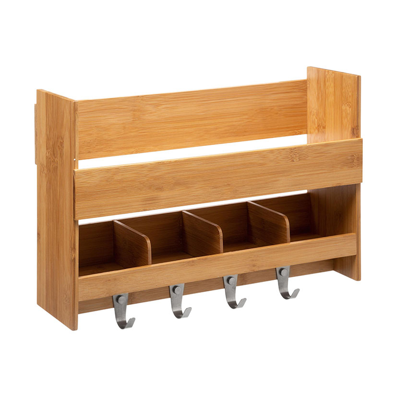 ESTANTE MURAL 4 GANCHOS 47X32 CM.BAMBU