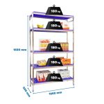 Estantería de acero inoxidable y bandejas de polipropileno que aguanta hasta 30º bajo cero y es perfecta para la organización y manipulación de alimentos. Esta Estantería tiene 5 estantes y sus bandejas tienen una capacidad de carga de 180 kgs cada una. El montaje es muy sencillo y rápido con su sistema sin tornillos y tiene unas dimensiones de 1600x1660x500 mms.