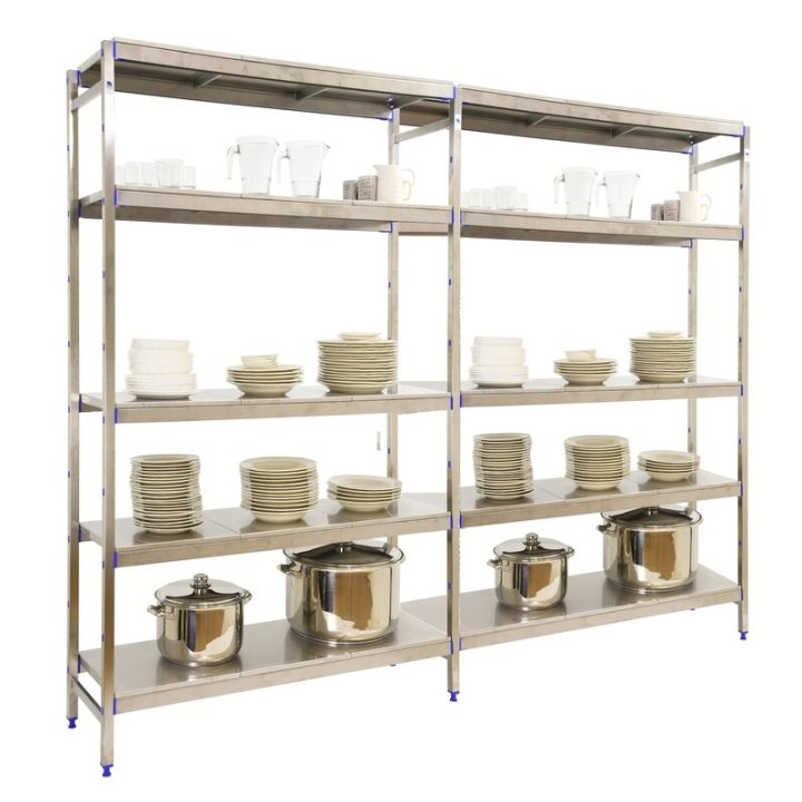 Estantería de acero inoxidable que aguanta hasta 30º bajo cero y es perfecta para la organización y manipulación de alimentos. Esta Estantería tiene 5 estantes y sus bandejas tienen una capacidad de carga de 200 kgs cada una. El montaje es muy sencillo y rápido con su sistema sin tornillos y tiene unas dimensiones de 1600x2490x500 mms.
