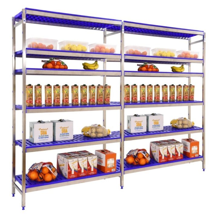 Estantería de acero inoxidable y bandejas de polipropileno que aguanta hasta 30º bajo cero y es perfecta para la organización y manipulación de alimentos. Esta Estantería tiene 6 estantes y sus bandejas tienen una capacidad de carga de 180 kgs cada una. El montaje es muy sencillo y rápido con su sistema sin tornillos y tiene unas dimensiones de 1600x2490x500 mms.