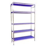 Estantería de acero inoxidable y bandejas de polipropileno que aguanta hasta 30º bajo cero y es perfecta para la organización y manipulación de alimentos. Esta Estantería tiene 5 estantes y sus bandejas tienen una capacidad de carga de 180 kgs cada una. El montaje es muy sencillo y rápido con su sistema sin tornillos y tiene unas dimensiones de 1600x860x400 mms.