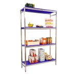 Estantería de acero inoxidable y bandejas de polipropileno que aguanta hasta 30º bajo cero y es perfecta para la organización y manipulación de alimentos. Esta Estantería tiene 4 estantes y sus bandejas tienen una capacidad de carga de 180 kgs cada una. El montaje es muy sencillo y rápido con su sistema sin tornillos y tiene unas dimensiones de 2000x1260x400 mms.