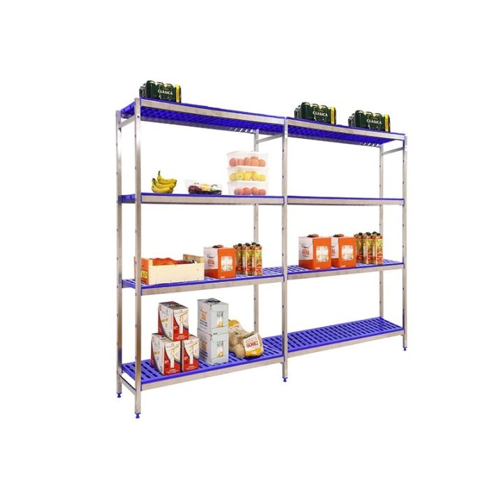 Estantería de acero inoxidable y bandejas de polipropileno que aguanta hasta 30º bajo cero y es perfecta para la organización y manipulación de alimentos. Esta Estantería tiene 4 estantes y sus bandejas tienen una capacidad de carga de 180 kgs cada una. El montaje es muy sencillo y rápido con su sistema sin tornillos y tiene unas dimensiones de 2000x3290x400 mms.