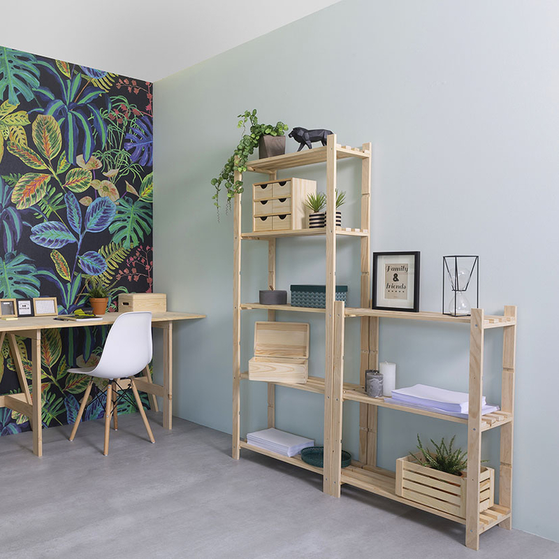 Por la naturalidad y neutralidad de su madera, resulta ideal tanto en dormitorios infantiles y juveniles, como en zonas de almacenaje o similares. La estantería tiene unas dimensiones de 65x40xh.171 cm y está compuesta por 5 baldas con una resistencia de 50 kg cada una. Incluye kit de montaje.