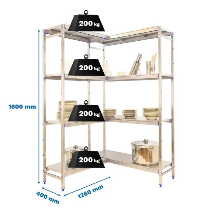 Estantería esquinera de acero inoxidable con bandejas de acero inoxidable Simoninox Corner 4SS 400