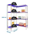 La estantería en corner aprovecha mejor el espacio y es muy útil en hostelería para adaptarse a los almacenes y despensas. Esta estantería tiene 4 estantes y sus bandejas tienen una capacidad de carga de 180 kgs cada una. El montaje es muy sencillo y rápido con su sistema sin tornillos y tiene unas dimensiones de 2000x(1760-1260)x500 mms.