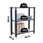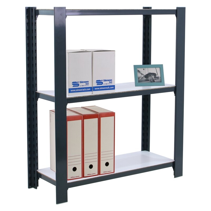 Estantería metálica sin tornillos con bandeja de aglomerado, de color ANTRACITA/BLANCO.