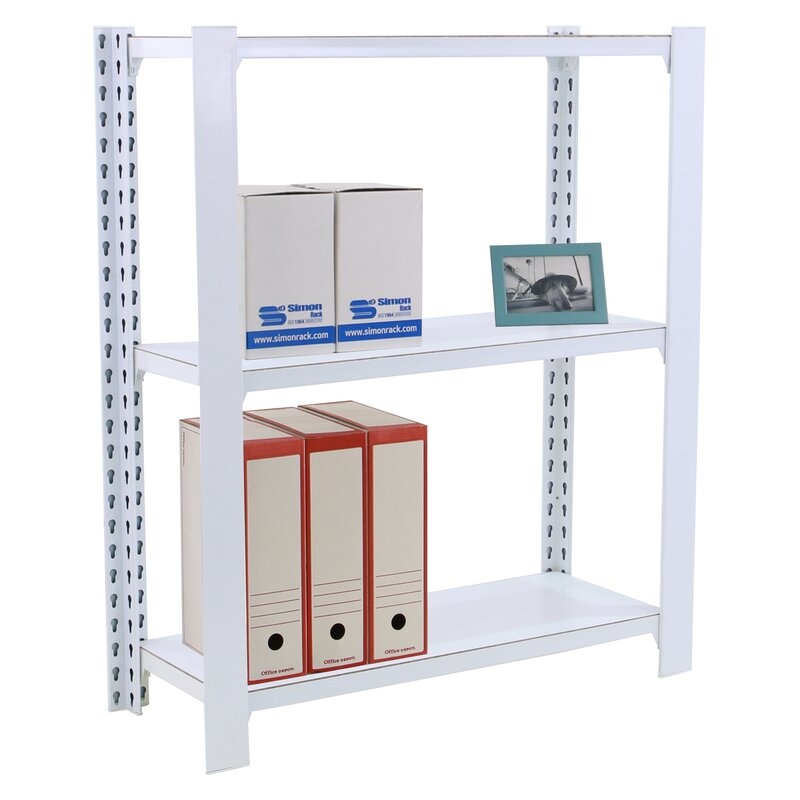 Estantería Metálica Officlick 3/300 Wood Modulo Inicial. Blanco/Blanco