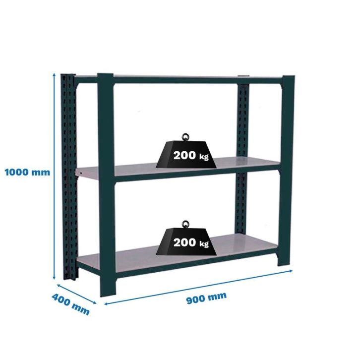 Estantería metálica sin tornillos con bandeja metálica, de color ANTRACITA/GALVA.