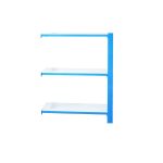 Estantería metálica sin tornillos con bandeja de aglomerado, de color AZUL/BLANCO. Módulo adicional (requiere módulo inicial). Tiene 3 estantes. Las dimensiones de esta Estantería son: 1000x900x400 mm. Y tiene una capacidad de carga de 200 kgs por estante. Es fabricado en España y se monta rápido siguiendo las instrucciones.