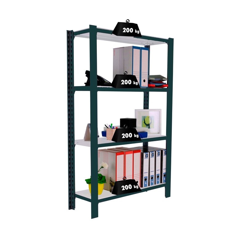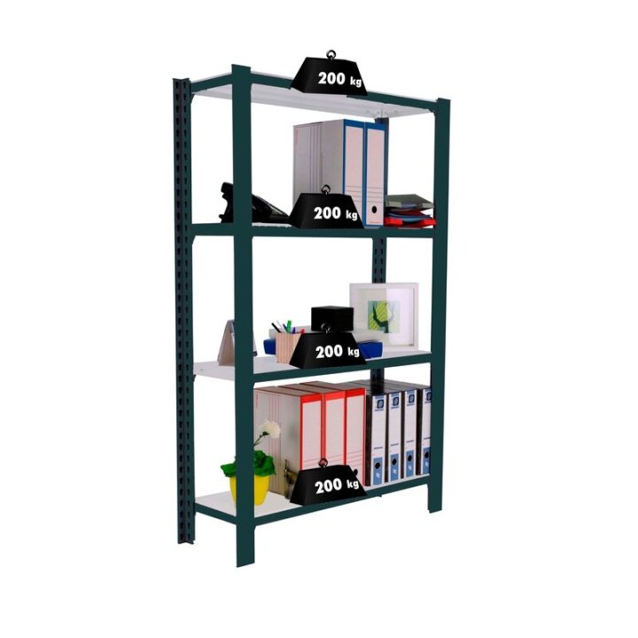 Estantería metálica sin tornillos con bandeja metálica, de color ANTRACITA/BLANCO.