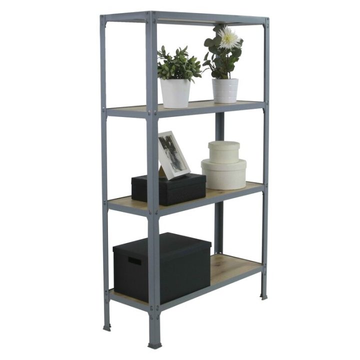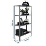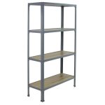Estantería metálica sin tornillos y con bandejas de aglomerado, ideal para el hogar. Montaje en menos de 12 minutos. Color del producto GRIS/ROBLE. Tiene 4 estantes. Las dimensiones de esta estantería son (alto x ancho x fondo): 1600x800x300 mm. Es rigida y tiene recubrimiento Epoxypoliester antirayaduras e innífugo. No necesita anclaje a la pared. Se pueden ajustar sus estantes en altura y combinarlos como se desee. Estantería con 4 pies para no rayar el suelo. Capacidad de carga de 150 kgs por estante, certificada a punto de flexión. Packaging con peso ligero. Disponible en otros colores. Producto fabricado en España.
