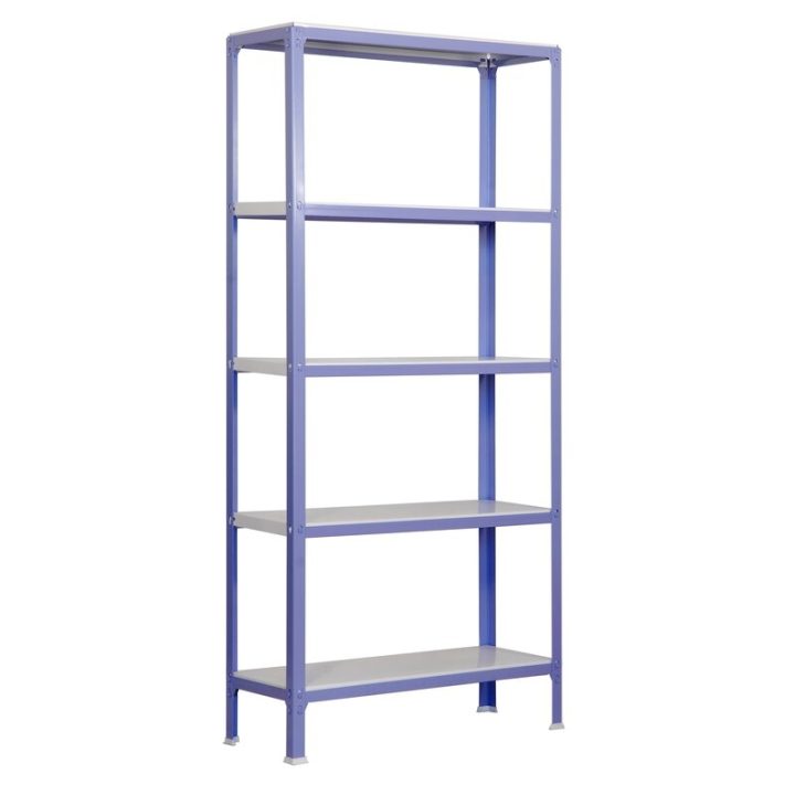 Es rigida. No necesita anclaje a la pared. Estanterías sin tornillos. La manera más fácil y rápida de montaje. Estanterías con topes para no rayar el suelo. Capacidad de carga de 150 kgs por bandeja metalica. Montaje en menos de 9 min. Packagin con peso ligero. Gran variedad de coloresColor del producto VIOLETA/BLANCO. Dimensiones 1800x1000x300. Nº estantes 5