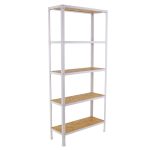 Estantería metálica sin tornillos y con bandejas de madera OSB , ideal para el hogar. Sistema de montaje fácil y rápido. Montaje en menos de 12 minutos. Color del producto BLANCO/OSB. La bandeja de OSB ofrece una alta resistencia, no tiene nudos, huecos u otros tipos de puntos débiles como pueden tener las bandejas contrachapadas, además resiste a la humedad y actúa como aislante térmico. Tiene 5 estantes. Las dimensiones de esta estantería son (alto x ancho x fondo): 1800x1000x300 mm. Es rigida y tiene recubrimiento Epoxypoliester antirayaduras e innífugo. No necesita anclaje a la pared. Se pueden ajustar sus estantes en altura y combinarlos como se desee. Estantería con 4 pies para no rayar el suelo. Capacidad de carga de 150 kgs por estante, certificada a punto de flexión. Packaging con peso ligero. Disponible en otros colores. Producto fabricado en España.