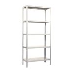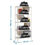 Es rigida. No necesita anclaje a la pared. Soporta 100 kgs por bandeja Los complementos están más orientados a una oficina en el hogar. Estantería sin tornillos que lleva largueros especiales para poder colocar carpetas colgantes. Tiempo aprox. montaje 9 mint.Color del producto BLANCO. Dimensiones 1800x800x360 . Nº estantes 5