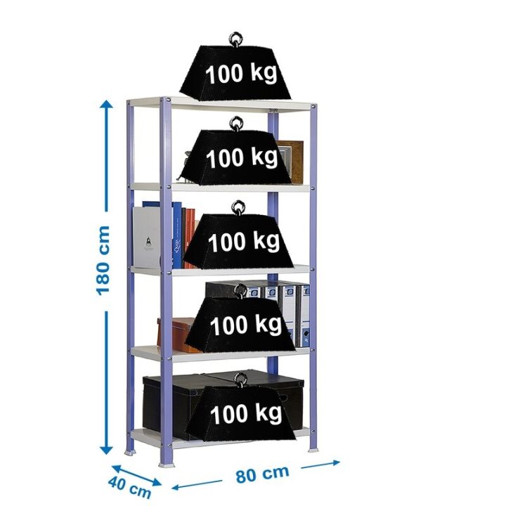 Es rigida. No necesita anclaje a la pared. Estanterías con tornillos avellanados con un mejor diseño. La manera más fácil y rápida de montaje. Estanterías con topes para no rayar el suelo. Capacidad de carga de 100 kgs por bandeja metalica. Montaje en menos de 9 min. Packagin con peso ligero. Gran variedad de colores Color del producto VIOLETA/BLANCO. Dimensiones 1800x800x400 . Nº estantes 5