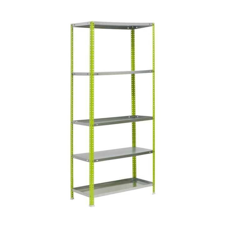 Estantería metálica con tornillos, de color VERDE/GALVANIZADO.Tiene 5 estantes. Las dimensiones de esta Estantería son: 1800x900x300 mm. Tiene una capacidad de carga de 100 kgs por estante. Incluye bandejas perforadas para que se filtre el agua. Incluye una bandeja lisa para contener el agua. Es fabricado en España y se monta rápido siguiendo las instrucciones.