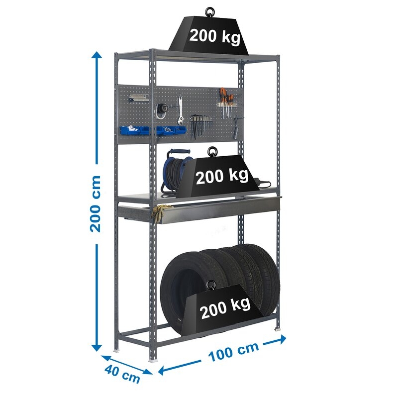 Estantería metálica sin tornillos, de color GRIS.Tiene 3 estantes. Las dimensiones de esta Estantería son: 2000x1000x400 mm. Y tiene una capacidad de carga de 200 kgs. No se tambalea y no tiene aristas de corte. Ideal para talleres mecánicos.Es fabricado en España y se monta rápido siguiendo las instrucciones.