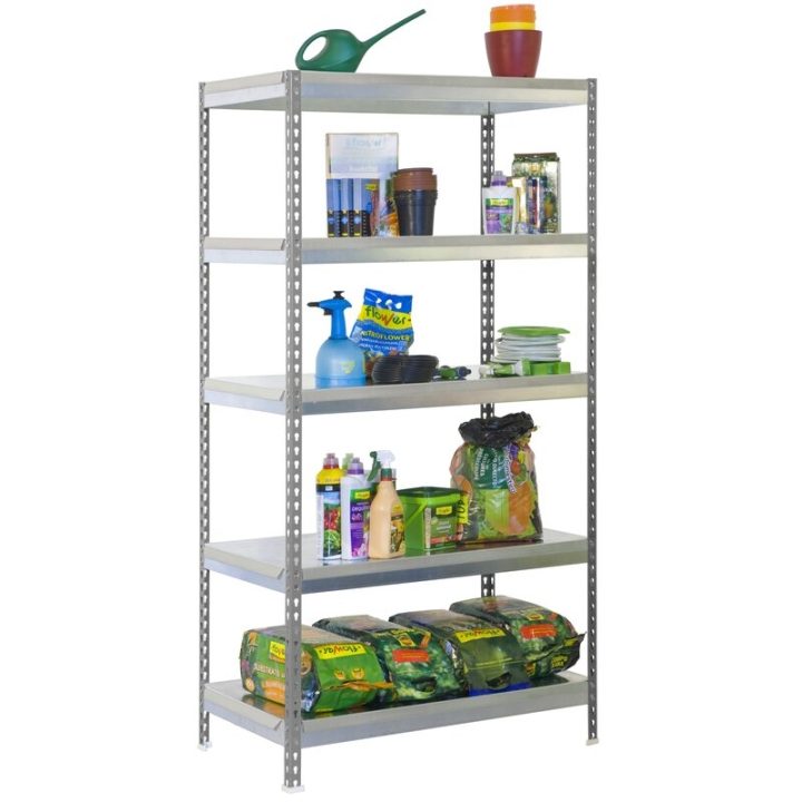 Estantería metálica sin tornillos, de color GRIS/GALVANIZADO.Tiene 5 estantes. Las dimensiones de esta Estantería son: 2000x1000x450 mm. Tiene una capacidad de carga de 300 kgs por estante y una capacidad total de 120 kgs. Ideal para almacenar productos de jardín. Gran capacidad de carga. Es fabricado en España y se monta rápido siguiendo las instrucciones.