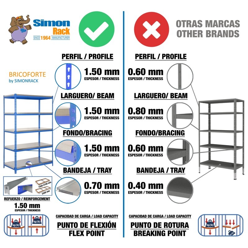 Estantería metálica sin tornillos con bandeja metálica, de color AZUL/GALVA.Tiene 5 estantes. Las dimensiones de esta Estantería son: 2000x1000x600 mm. Y tiene una capacidad de carga de 300 kgs. Estantería rígida, no se tambalea y no necesita anclaje a la pared. Es fabricado en España y se monta rápido siguiendo las instrucciones.