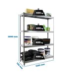 Estantería media carga sin tornillos Ecoforte 2000x1200x750 mm. De color GALVA/GALVA. La capacidad de carga es de 400 kgs.
