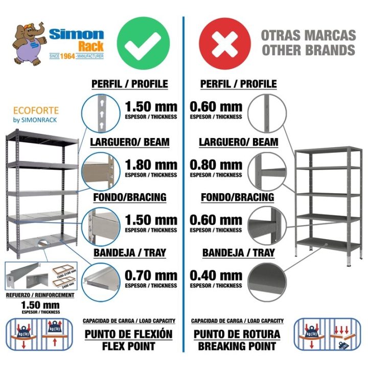 Estantería metálica sin tornillos con bandejas de metal Ecoforte 1506-5