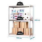 Estantería media carga sin tornillos Ecoforte 2000x1500x600 mm. De color GALVA/MADERA. La capacidad de carga es de 400 kgs.