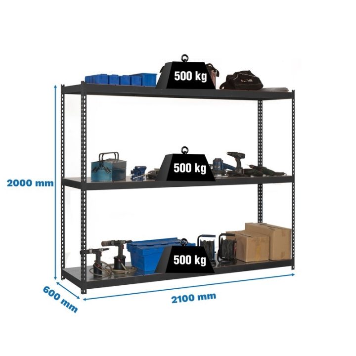 Estantería media carga sin tornillos 2000x2100x600 mm. De color ANTRACITA/GALVA.
