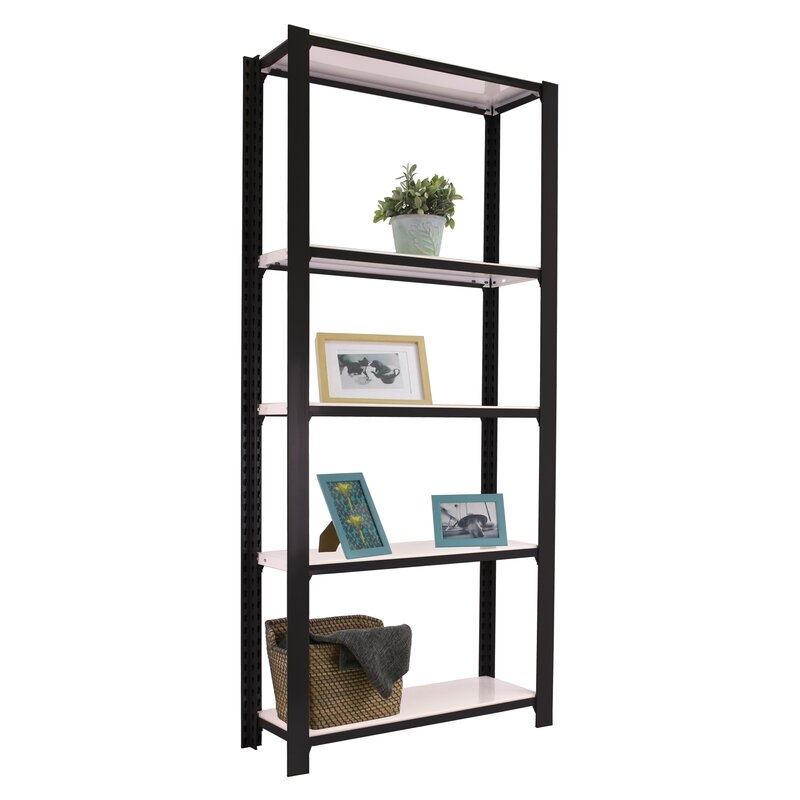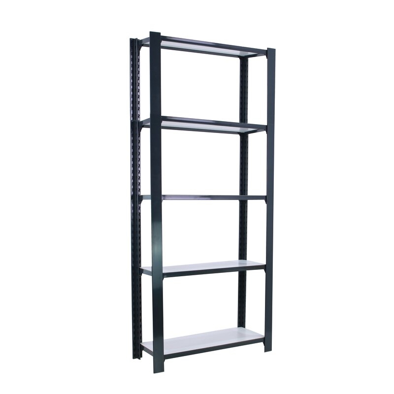 Estantería metálica sin tornillos con bandeja de aglomerado, de color ANTRACITA/BLANCO.