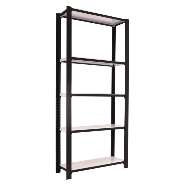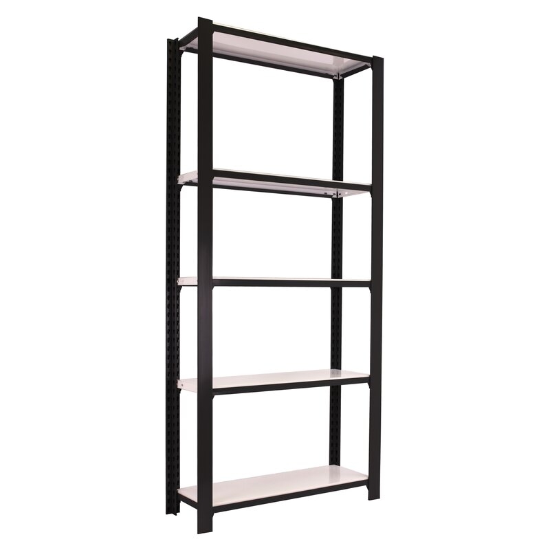 Estantería metálica sin tornillos con bandeja metálica, de color ANTRACITA/BLANCO.