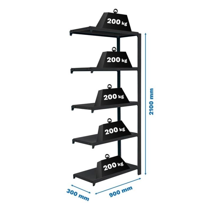 Estantería metálica sin tornillos con bandeja metálica, de color ANTRACITA/ANTRACITA.