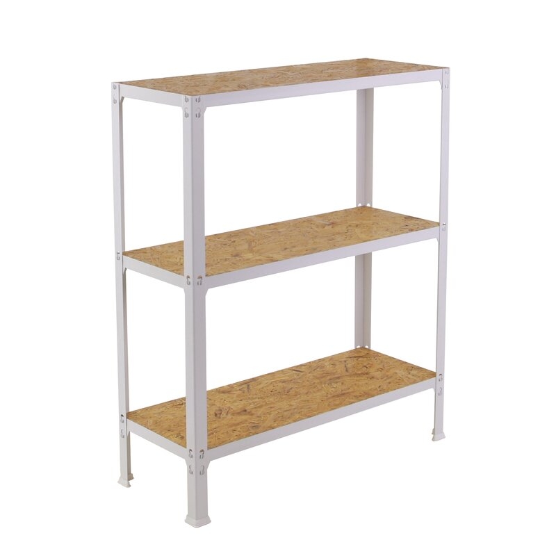 Estantería metálica sin tornillos y con bandejas de madera OSB , ideal para el hogar. Sistema de montaje fácil y rápido. Montaje en menos de 12 minutos. Color del producto Blanco/OSB. La bandeja de OSB ofrece una alta resistencia, no tiene nudos, huecos u otros tipos de puntos débiles como pueden tener las bandejas contrachapadas, además resiste a la humedad y actúa como aislante térmico. Tiene 3 estantes. Las dimensiones de esta estantería son (alto x ancho x fondo): 900x1000x300 mm. Es rigida y tiene recubrimiento Epoxypoliester antirayaduras e innífugo. No necesita anclaje a la pared. Se pueden ajustar sus estantes en altura y combinarlos como se desee. Estantería con 4 pies para no rayar el suelo. Capacidad de carga de 150 kgs por estante, certificada a punto de flexión. Packaging con peso ligero. Disponible en otros colores. Producto fabricado en España.