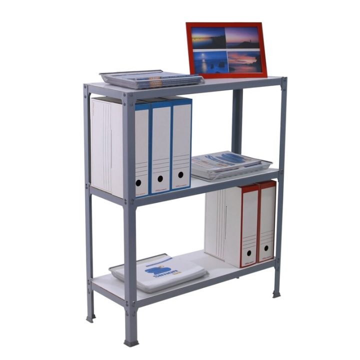 Estantería metálica sin tornillos y con bandejas de aglomerado, ideal para el hogar. Montaje en menos de 12 minutos. Color del producto GRIS/BLANCO. Tiene 3 estantes. Las dimensiones de esta estantería son (alto x ancho x fondo): 900x1000x300 mm. Es rigida y tiene recubrimiento Epoxypoliester antirayaduras e innífugo. No necesita anclaje a la pared. Se pueden ajustar sus estantes en altura y combinarlos como se desee. Estantería con 4 pies para no rayar el suelo. Capacidad de carga de 150 kgs por estante, certificada a punto de flexión. Packaging con peso ligero. Disponible en otros colores. Producto fabricado en España.