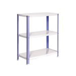 Es rigida. No necesita anclaje a la pared. Estanterías con tornillos avellanados con un mejor diseño. La manera más fácil y rápida de montaje. Estanterías con topes para no rayar el suelo. Capacidad de carga de 100 kgs por bandeja metalica. Montaje en menos de 9 min. Packagin con peso ligero. Gran variedad de colores Color del producto VIOLETA/BLANCO. Dimensiones 900x1000x300 . Nº estantes 3
