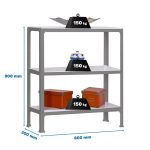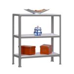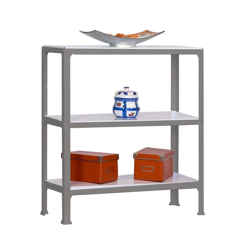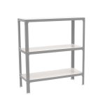 Estantería metálica sin tornillos y con bandejas de aglomerado, ideal para el hogar. Montaje en menos de 12 minutos. Color del producto GRIS/BLANCO. Tiene 3 estantes. Las dimensiones de esta estantería son (alto x ancho x fondo): 900x800x300 mm. Es rigida y tiene recubrimiento Epoxypoliester antirayaduras e innífugo. No necesita anclaje a la pared. Se pueden ajustar sus estantes en altura y combinarlos como se desee. Estantería con 4 pies para no rayar el suelo. Capacidad de carga de 150 kgs por estante, certificada a punto de flexión. Packaging con peso ligero. Disponible en otros colores. Producto fabricado en España.