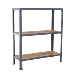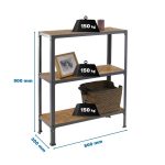 Estantería metálica sin tornillos y con bandejas de madera OSB , ideal para el hogar. Sistema de montaje fácil y rápido. Montaje en menos de 12 minutos. Color del producto Gris/OSB. La bandeja de OSB ofrece una alta resistencia, no tiene nudos, huecos u otros tipos de puntos débiles como pueden tener las bandejas contrachapadas, además resiste a la humedad y actúa como aislante térmico. Tiene 3 estantes. Las dimensiones de esta estantería son (alto x ancho x fondo): 900x800x300 mm. Es rigida y tiene recubrimiento Epoxypoliester antirayaduras e innífugo. No necesita anclaje a la pared. Se pueden ajustar sus estantes en altura y combinarlos como se desee. Estantería con 4 pies para no rayar el suelo. Capacidad de carga de 150 kgs por estante, certificada a punto de flexión. Packaging con peso ligero. Disponible en otros colores. Producto fabricado en España.