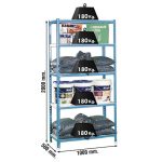 La estantería metálica SIMON RACK kit Simonclick Plus 5/5 cuenta con cinco estantes, cada uno con una capacidad de carga de hasta 180 kg, brindando una resistencia adecuada para diversos usos. El sistema proporciona acceso libre a todos los estantes y no incluye aspas de arriostramiento, optimizando la accesibilidad. Su estructura está recubierta con pintura epoxi poliéster azul y las bandejas son blancas, lo que garantiza durabilidad y un atractivo visual. Puedes consultar el video del montaje que tenemos en nuestra web.