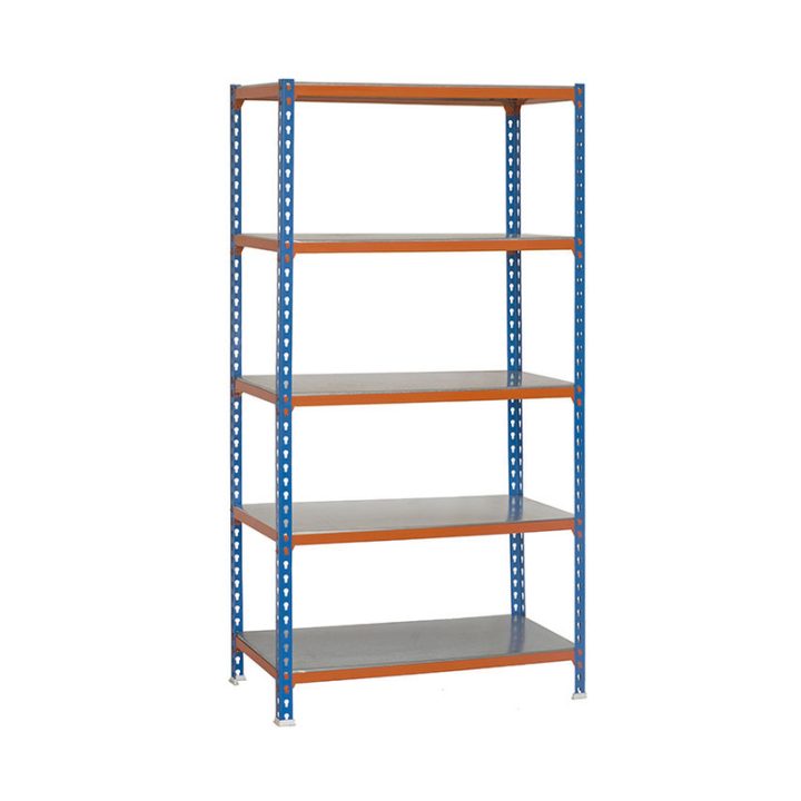 La estantería Metálica SIMON RACK Click Super Plus 5/500 ofrece una solución práctica y robusta para el almacenamiento en cualquier espacio. Estructura metálica en azul, ensamblaje rápido y sencillo gracias a su sistema de click, sin tornillos. Está compuesta por 5 estantes, bandeja con acabado galvanizado, cada estante soporta hasta 150 kg. Permite colocar la bandeja en 3 posiciones: estándar, angle y container. Además, incluye 4 pies de plástico para una buena estabilidad e instrucciones de montaje. Calidad española fabricada con los estándares europeas.
