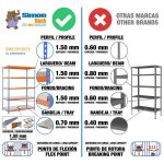 Estantería metálica sin tornillos con bandeja metálica, de color AZUL/NARANJA/GALVA.Tiene 5 estantes. Las dimensiones de esta Estantería son: 2000x1000x450 mm. Y tiene una capacidad de carga de 300 kgs. Estantería rígida, no se tambalea y no necesita anclaje a la pared. Es fabricado en España y se monta rápido siguiendo las instrucciones.