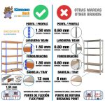 Estantería metálica sin tornillos con bandeja de madera, de color AZUL/NARANJA/MADERA.Tiene 5 estantes. Las dimensiones de esta Estantería son: 2000x1200x450 mm. Y tiene una capacidad de carga de 300 kgs. Estantería rígida, no se tambalea y no necesita anclaje a la pared. Es fabricado en España y se monta rápido siguiendo las instrucciones.