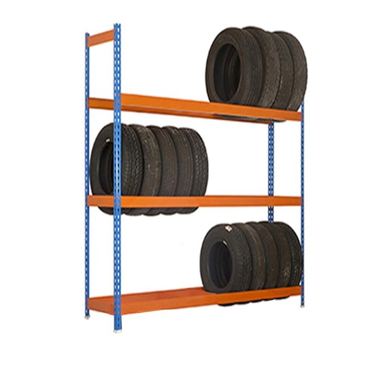 Estantería perfecta para almacenar ruedas y neumáticos en un taller meánico.