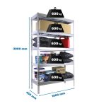 Estantería media carga sin tornillos 2000x1800x450 mm. De color GALVA/GALVA. La capacidad de carga es de 600 kgs.